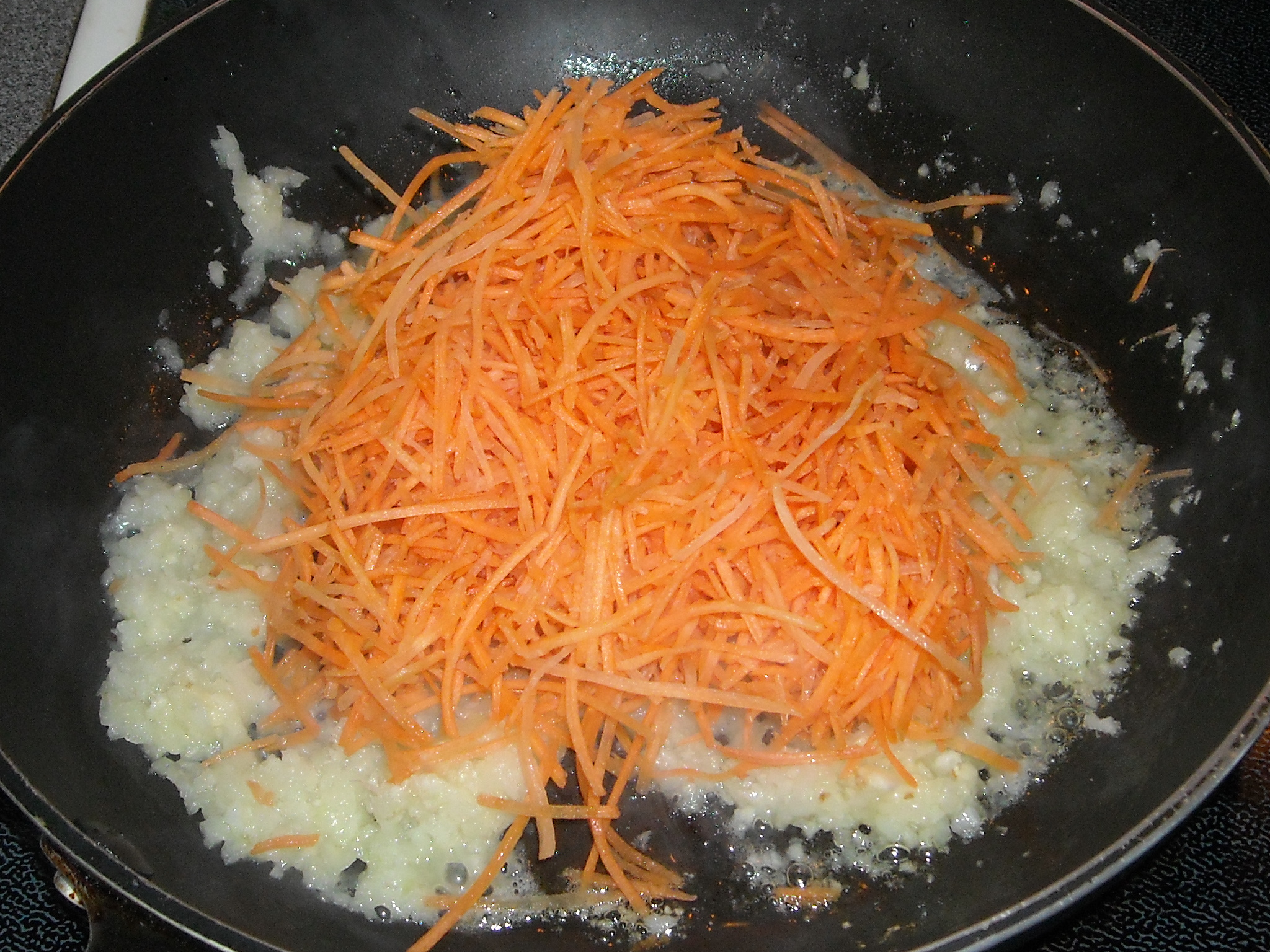 Zwiebel, Rüebli und Knoblauch in einer weiteren Bratpfanne andämpfen. Bouillon dazu giessen, aufkochen. Hitze reduzieren, Ketchup, BBQ-Sauce, Tomatenpüree beigeben, mischen, ca. 10 Min. köcheln.