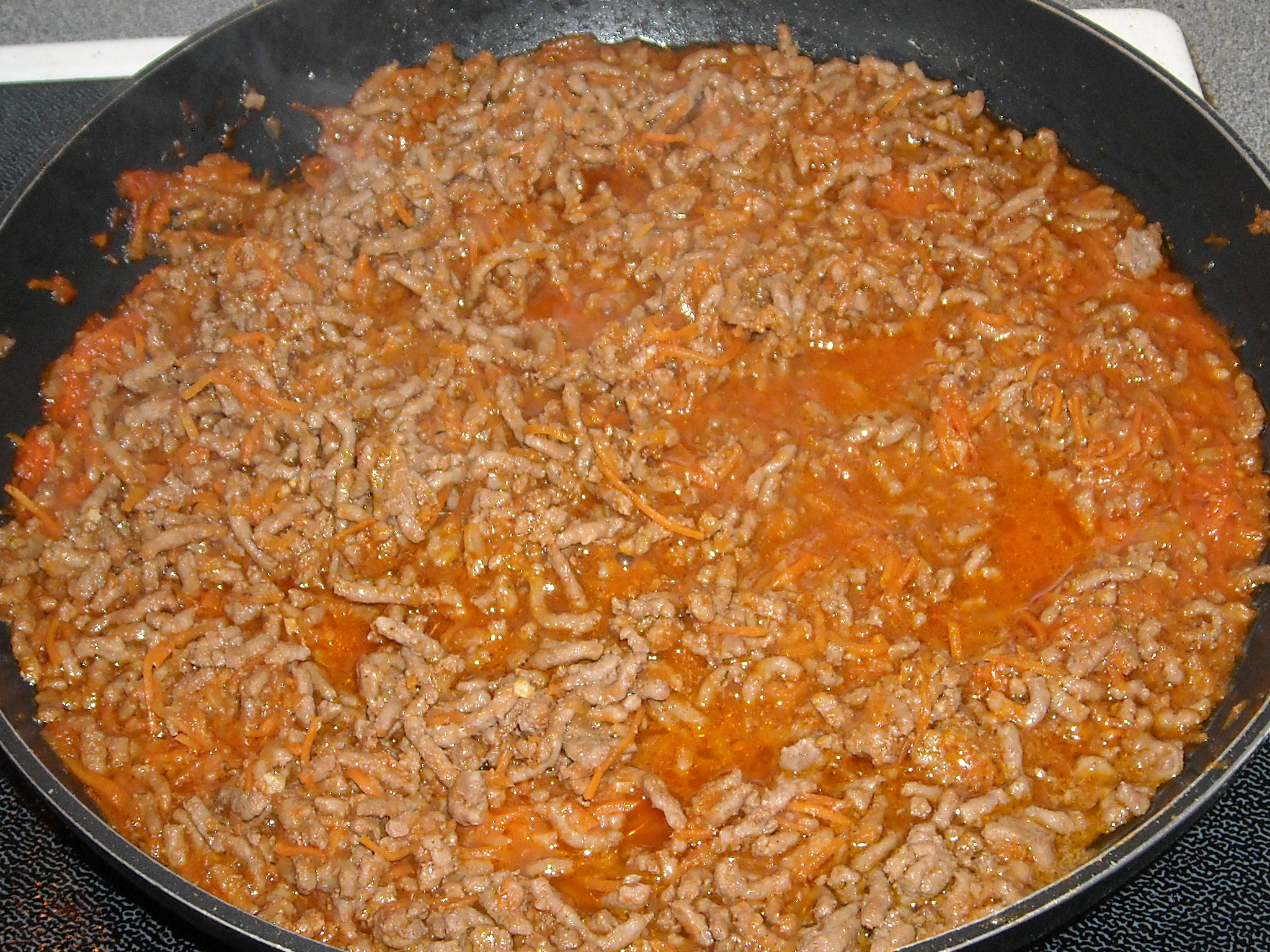 Anschliessend mit dem angebratenem Hackfleisch vermischen.