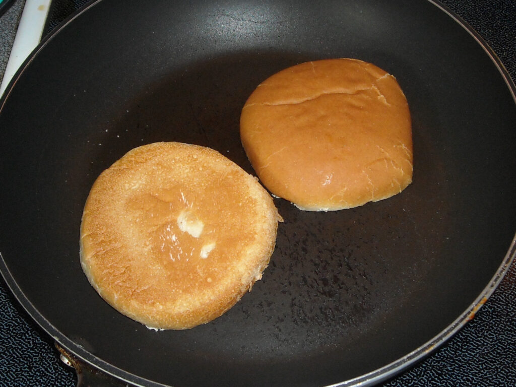 Burger-Brötli in einer Bratpfanne mit der Schnittfläche nach unten ca. 1 Min. rösten.
